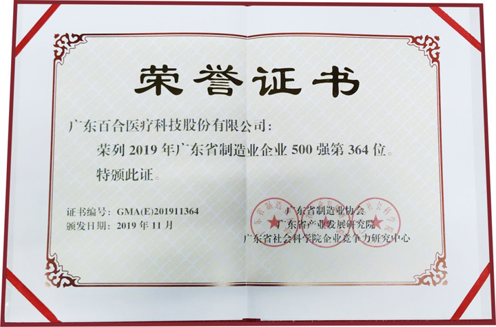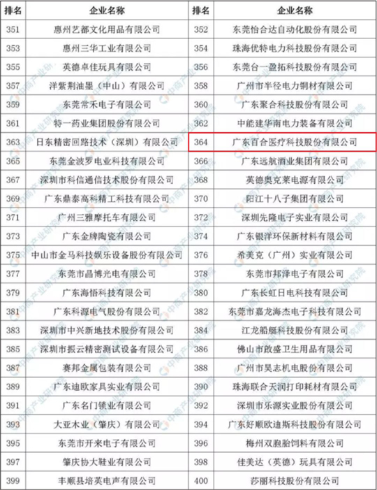 【企業(yè)新聞】喜訊!百合醫(yī)療榮登“廣東省制造業(yè)500強(qiáng)”榜單
