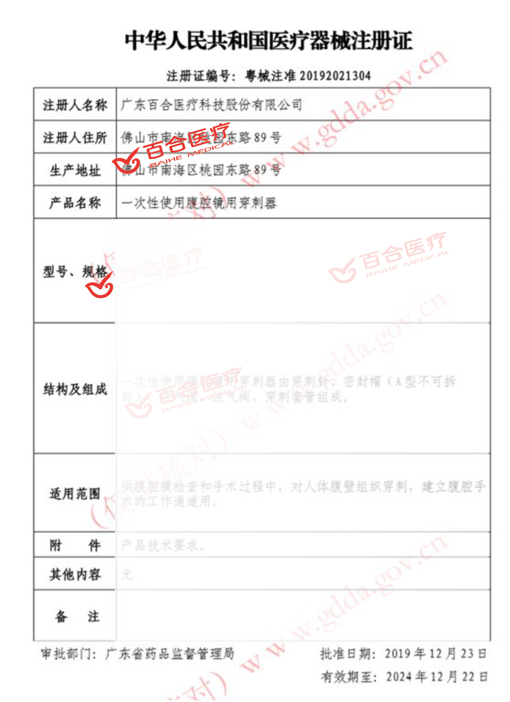 熱烈慶祝百合醫(yī)療“一次性使用腹腔鏡穿刺器”喜獲注冊(cè)證