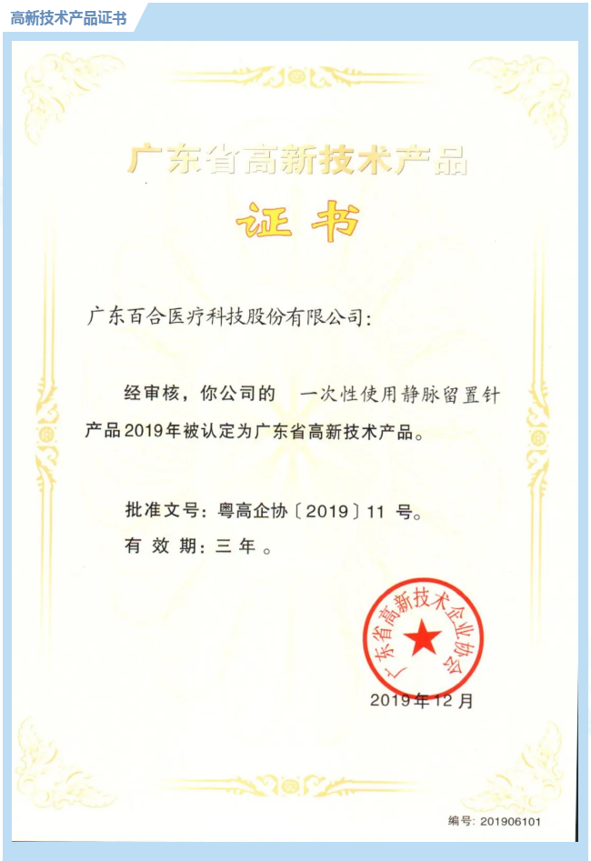 百合醫(yī)械集團(tuán)7個(gè)產(chǎn)品榮獲2019年高新技術(shù)產(chǎn)品認(rèn)定