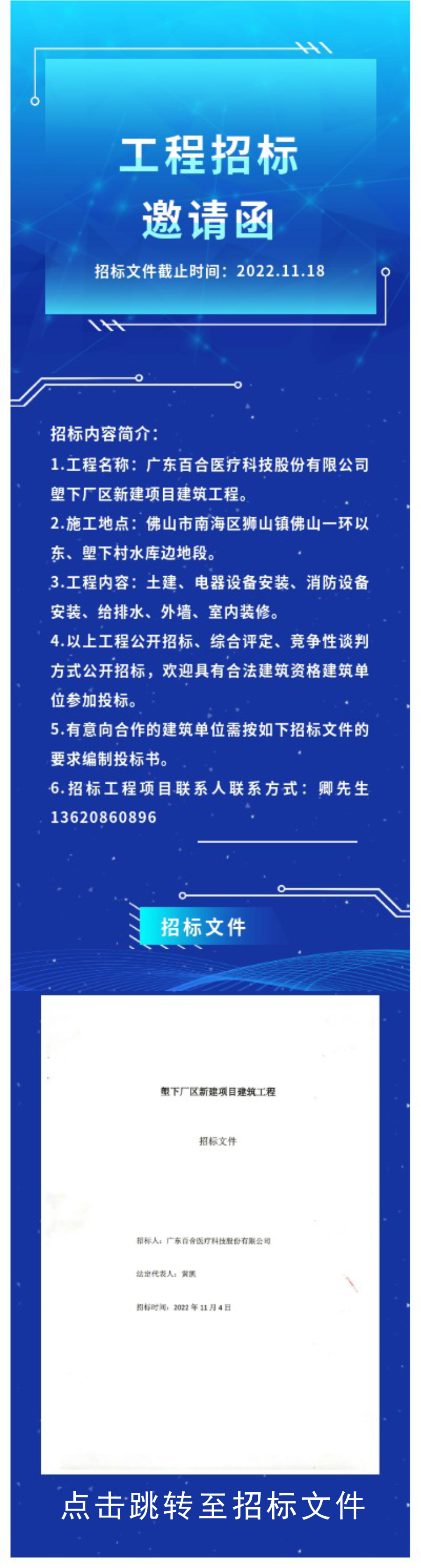 百合醫(yī)療塱下廠區(qū)新建項(xiàng)目建筑工程招標(biāo)邀請(qǐng)函