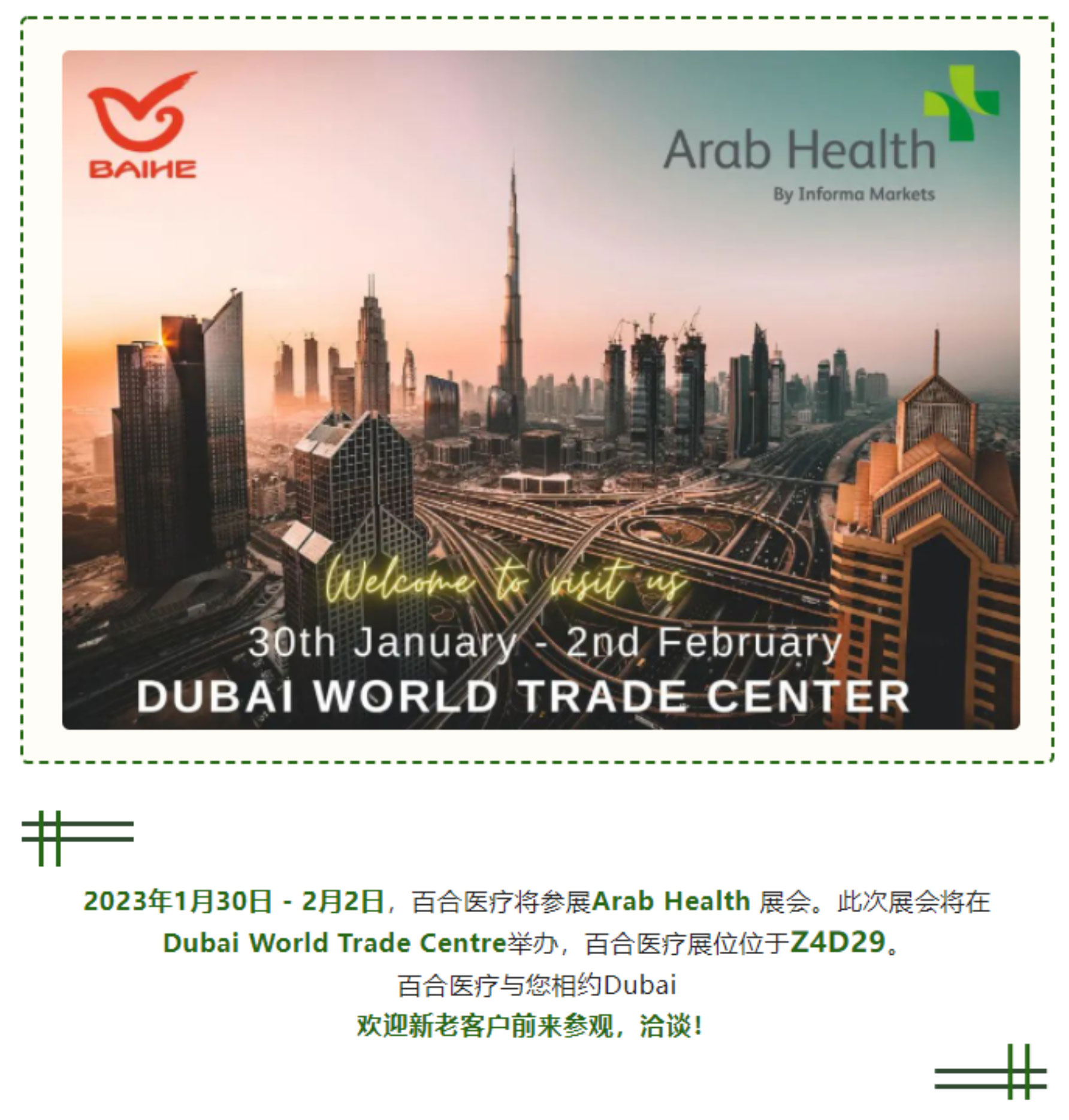 2023年1月30日 - 2月2日Arab Health 展會(huì),百合醫(yī)療歡迎您