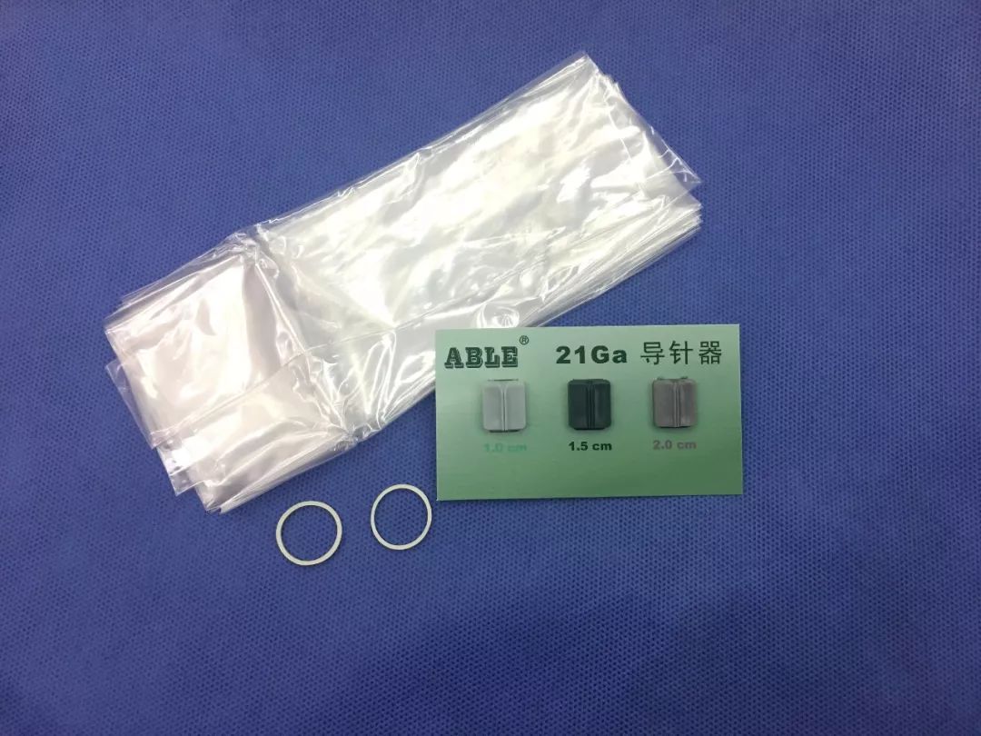 產(chǎn)品由導(dǎo)針器,探頭護(hù)罩、彈性圈,一次性醫(yī)用中單組成。